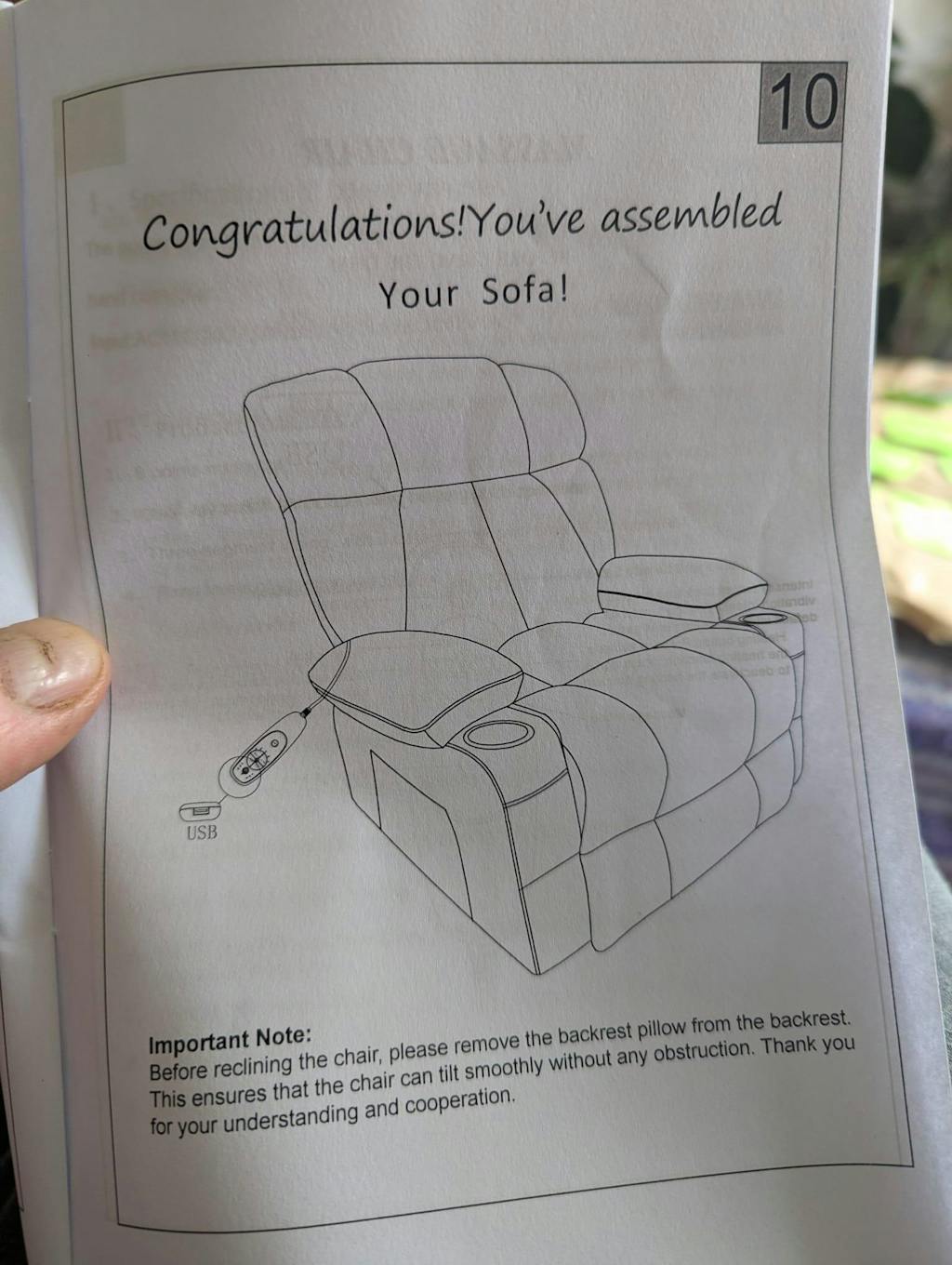 Main thing that is pretty ridiculous is that the instruction manual says "Before reclining the chair, please remove the backrest pillow from the backrest". I don't think it's unfair to say that the expectation of a reclining chair is that you can recline it without having to get on and off it every time. If you are reclining it and then putting the cushion back on each time, it adds several steps to the process of getting it in the position you want. It should be clearly stated in the listing that this is the case. It isn't.