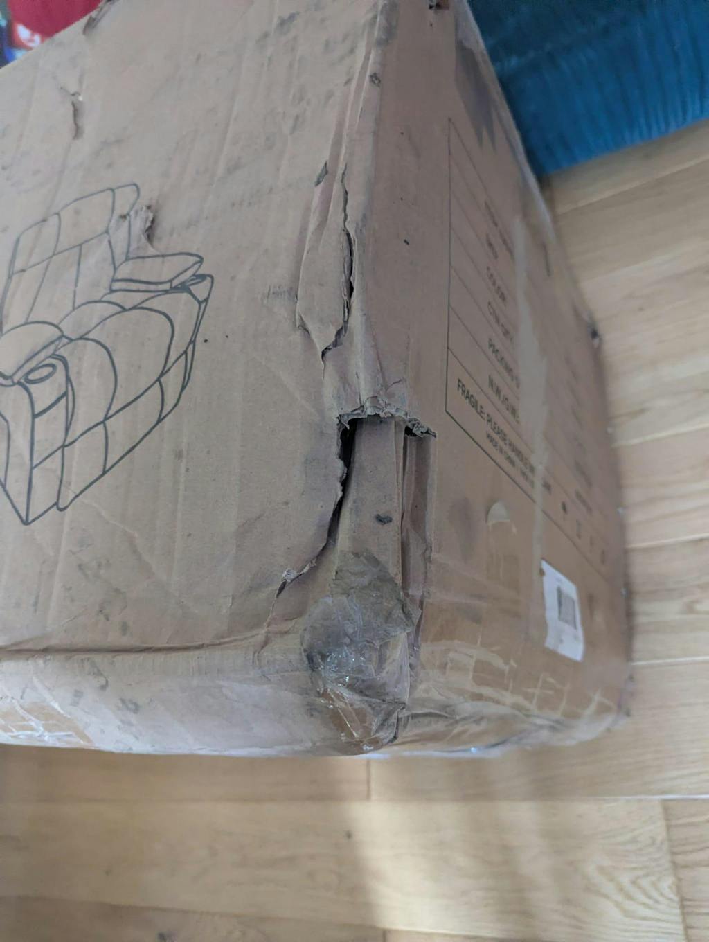 The box arrived with dents and holes all over it, and even boxes inside the packaging had holes in them.