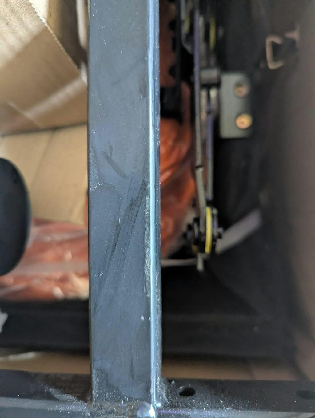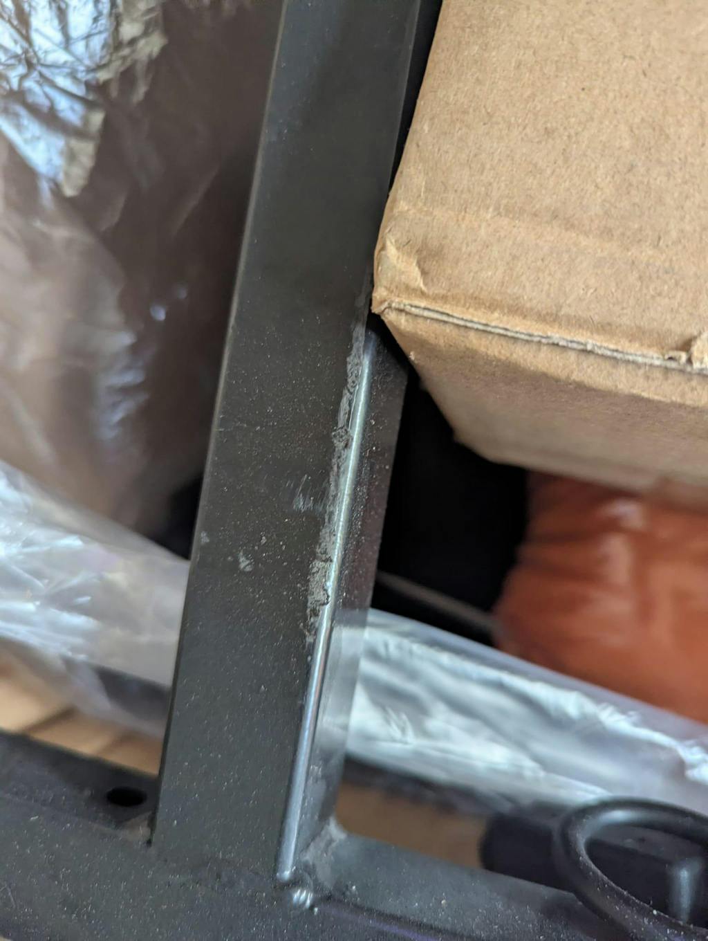 The frame arrived damaged and scuffed. Damage that clearly didn't happen in transit. One of the cushions has a tear in it that's gone though the plastic packaging.