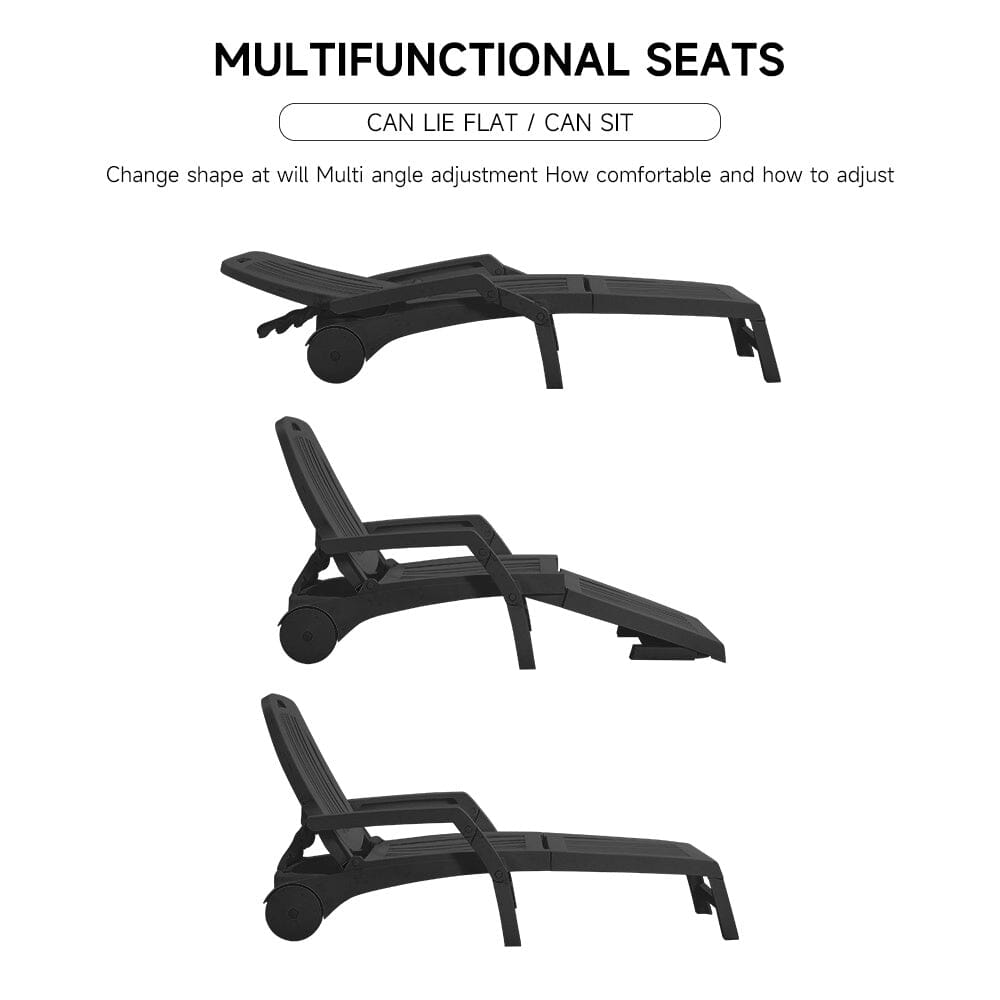 Spend the afternoon leisurely lying on this Livingandhome Lounge Chair while basking in the warmth of the sun. Crafted from resilient plastic, this chair boasts a foldable design, making it an ideal companion for outdoor activities, whether by the pool or on the beach. Its adjustable backrest allows you to discover the optimal angle for your comfort, ensuring a blissful space for relaxation and napping. With its lightweight construction and integrated wheels, transporting this lounger is effortlessly convenient.